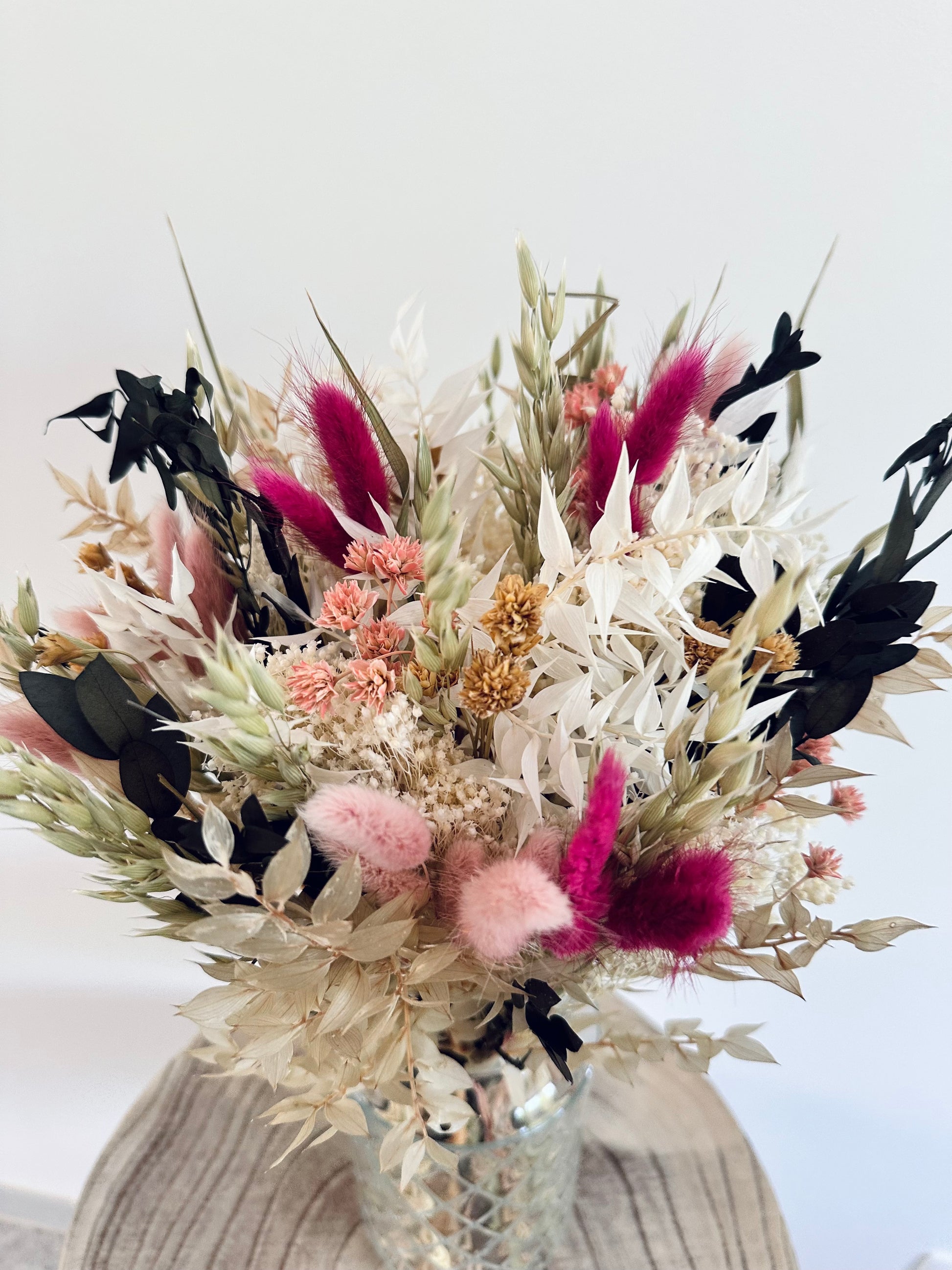 Boeket Annabel inclusief vaas zoals afgebeeld op de foto.