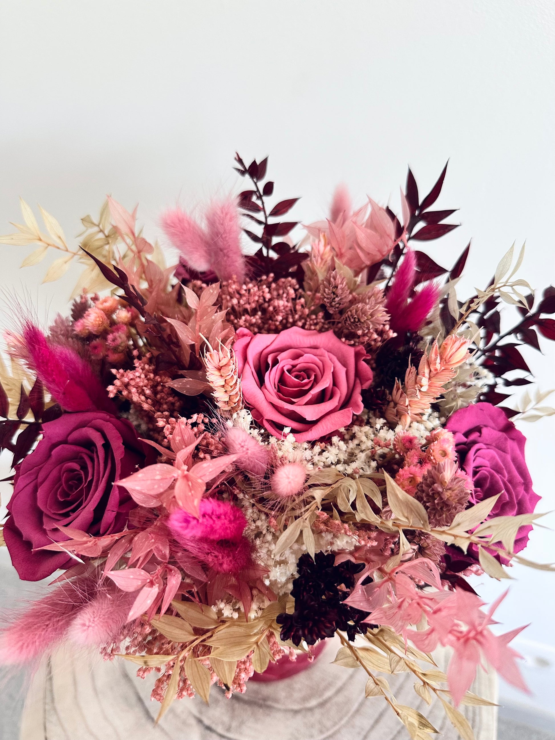 Boeket Cheriese is een stijlvol boeket met geconserveerde rozen.